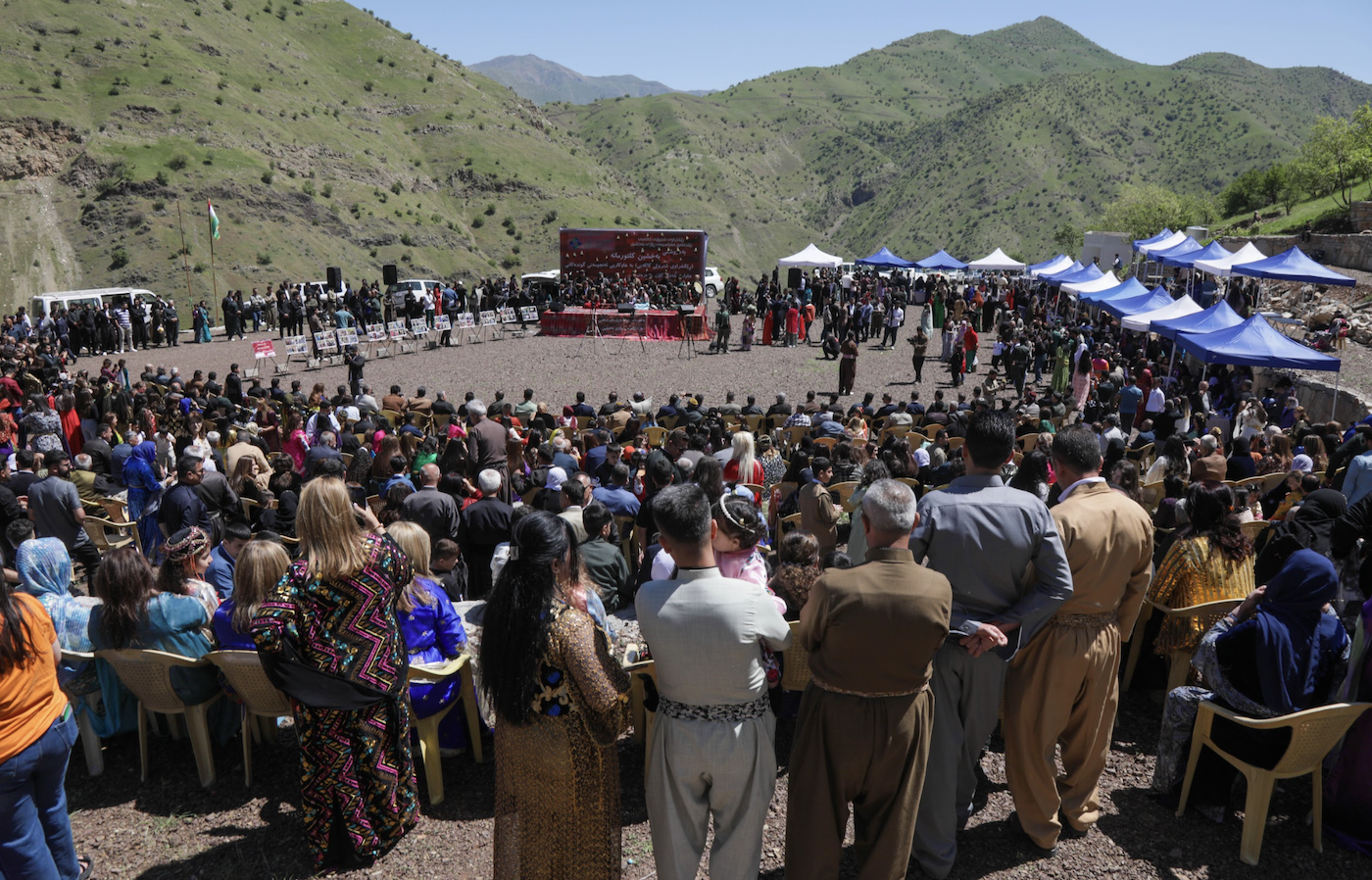 In the breezy April air of Hawar Village, southeast of Halabja in the Kurdistan Region near the Iranian border, a distinct sound drifts across the hills. Sunlight glints off the vibrant colors of traditional Kurdish dress worn by women, men, and children gathered for the annual Giving Day ceremony.