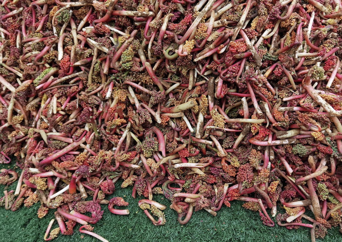 Ma’az listed several of the featured plants by their Kurdish names: watercress (gyadokhawa), wild mint (haz), wild artichoke (kanger), rhubarb (rewas), spinach (barza), beetroot (tolka), mountain herb (kuzala), sorrel (palpina), garlic (punga), mallow (gabla), chicory (chawbazal), cress (psal), shepherd’s purse (gozrwan), dandelion greens (papokalasher), violet (vanusha), purslane (manola), mustard (rusqa), and the rare Loya mushroom (qachiki Loya), among others.