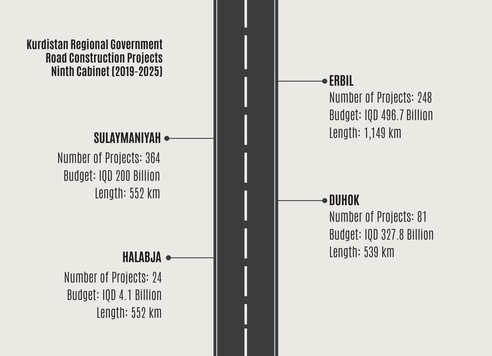 In its six-year tenure, the KRG’s Ninth Cabinet has completed 717 road projects, constructing 2,681 kilometers of road. These figures are remarkable, given that the total area of the Kurdistan Region is only 40,000 square kilometers.