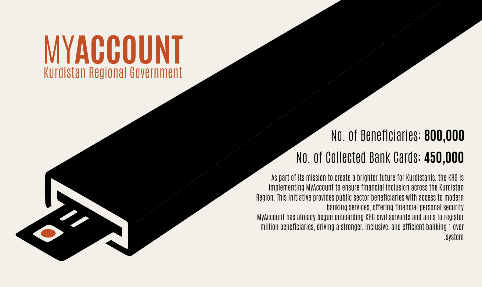 As part of its mission to create a brighter future for Kurdistanis, the KRG is implementing the MyAccount initiative to ensure financial inclusion across the region. This initiative provides public sector beneficiaries with access to modern banking services, enhancing personal financial security.