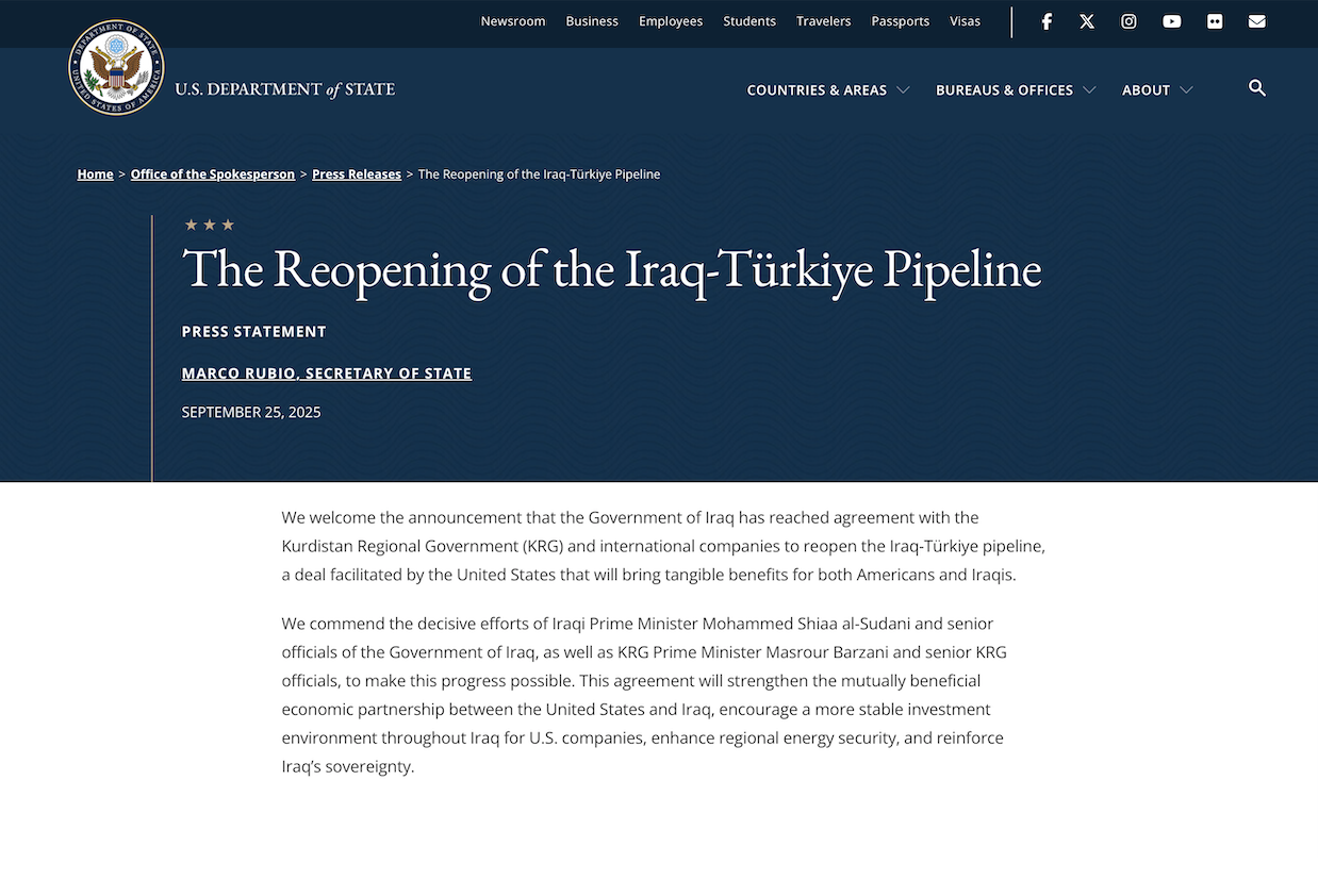 Following the announcements by both Prime Ministers Barzani and al-Sudani, the reopening of the ITP reflects broader implications for the region. U.S. Secretary of State Marco Rubio welcomed the announcement that the government of Iraq has reached an agreement with the KRG and international companies to reopen the ITP. This deal, facilitated by the United States, is expected to bring tangible benefits for both Americans and Iraqis.