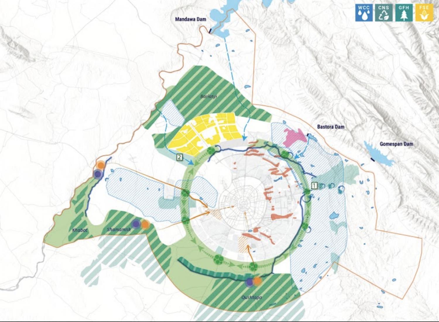 The entire area will be divided into eight different zones with three major entrance points. According to a detailed master plan published by the KRG, 11 water retention ponds will ensure a steady supply of water to the project, and the project will include four parks. It will be accessible to the public via a special bus route with 23 stops.