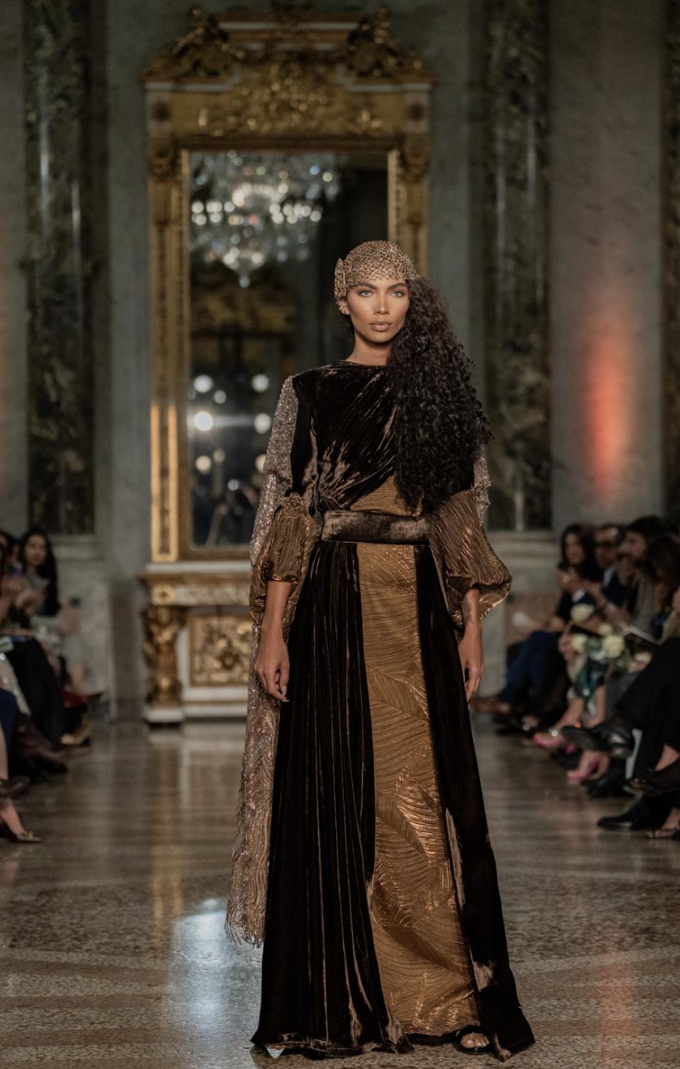 The Milan show comprised 30 designs, each anchored in Kurdish history and symbolism. The opening look paid homage to the Erbil Citadel, while another radiated Newroz, the Kurdish New Year, its fire rendered in a staff, crown, earrings, and a design that seemed to move toward the flame. There was also a regal interpretation of Ishtar, the Mesopotamian goddess, and pieces reflecting Yezidi culture and Eastern Kurdistan (northwestern Iran). On every seat lay a small booklet describing the story behind each design, an old-world touch in a hypermodern moment.