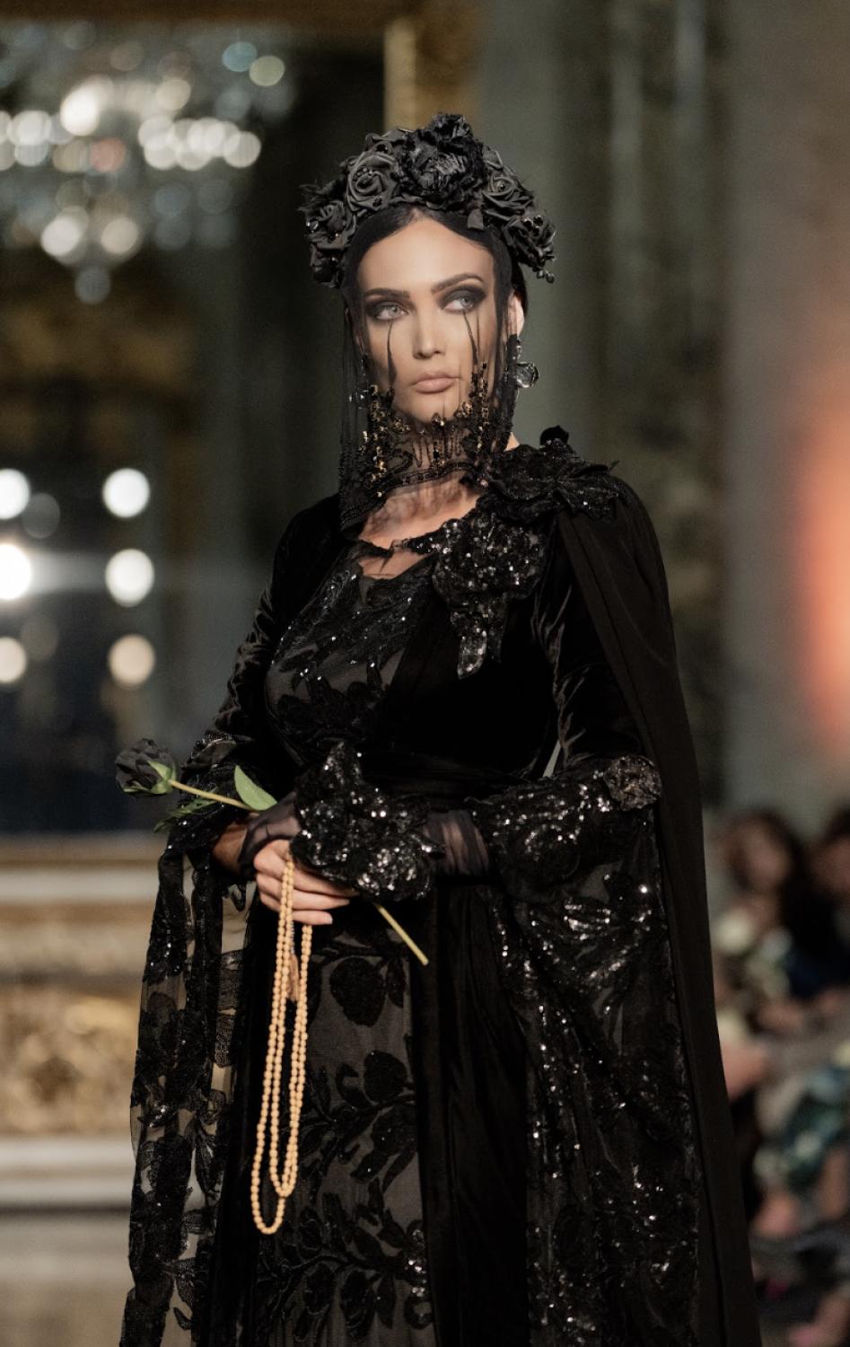 One of the most arresting looks was “The Widow,” Dizeyee’s tribute to Kurdish women who have lost husbands to war and martyrdom. “I chose a model with a strong, fearless face,” she recalls. “She wore black and raised her hand to the sky with a rosary and a black flower. Everything was black, but it was majestic, powerful.” The gesture, she adds, was deliberate: a plea to God, and a reminder of resilience.