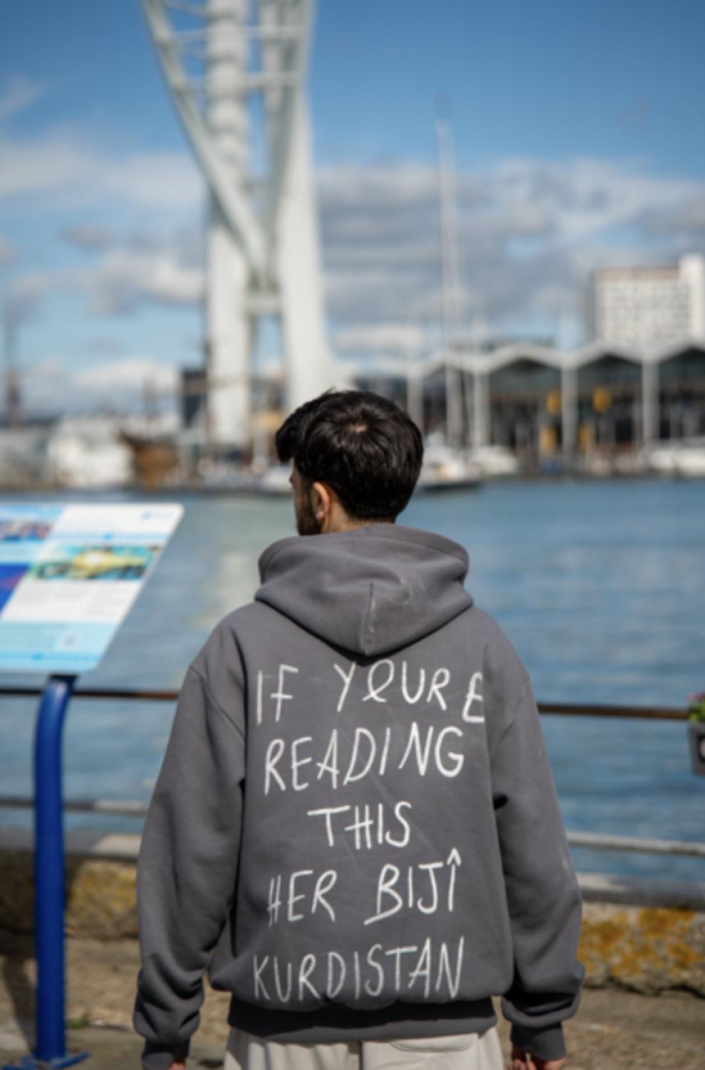 By July 2024, he created his first social media post with samples of his clothes. Based on the responses, he ordered the most popular design, the ‘Halabja t-shirt’. That initial release took a long time to sell, leaving him close to quitting. Yet Rashad decided to give it another shot and ordered a new design, the “Her Biji Kurdistan” hoodie. It was a big risk financially, but it paid off. The design was a success, selling out in less than two weeks.
