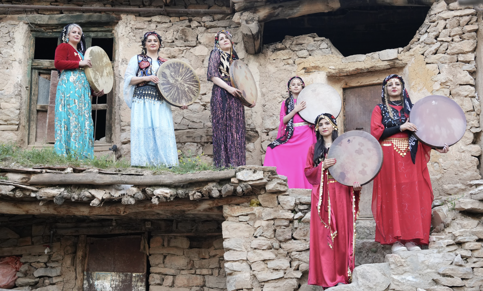 On the morning of April 20, the festival begins at 10:00 am. As the sun rises over Palangan, Daf players – men and women, young and old – take their places.